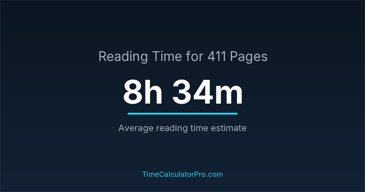Using a reading time calculator, you can estimate that 411 pages will take around 8 hours and 34 minutes to complete.