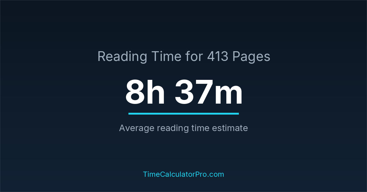 Reading 413 pages takes about 8 hours and 37 minutes.