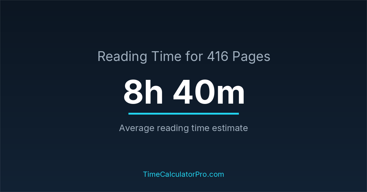 Reading 416 pages takes about 8 hours and 40 minutes.