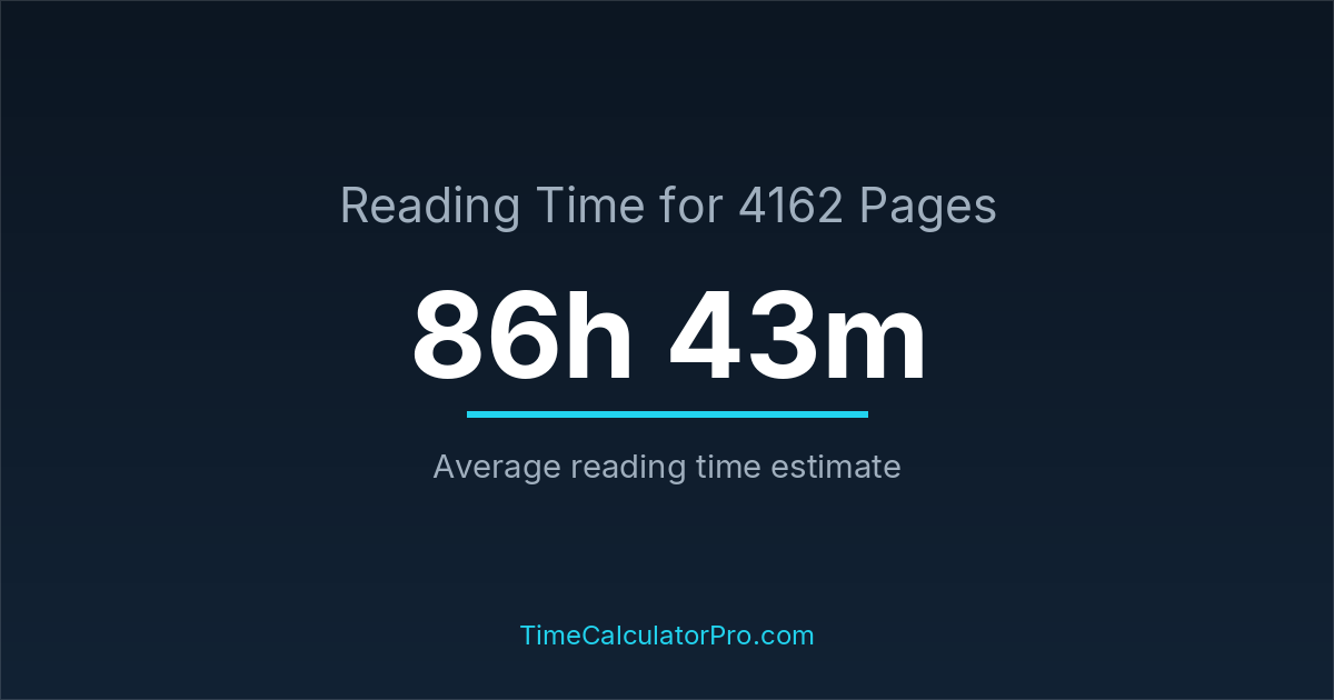 Reading 4162 pages takes about 86 hours and 43 minutes.