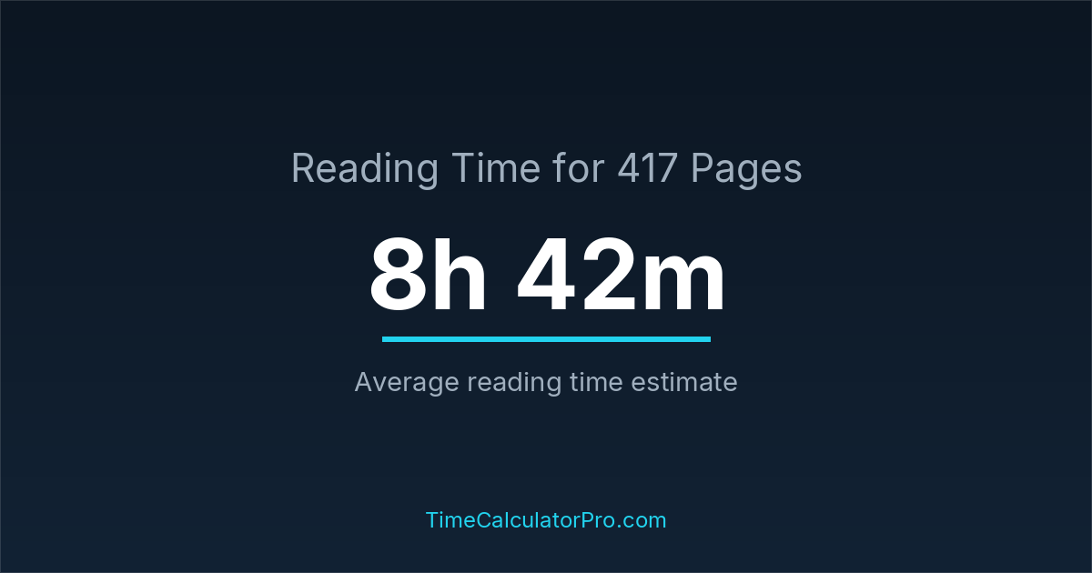 Reading 417 pages takes about 8 hours and 42 minutes.
