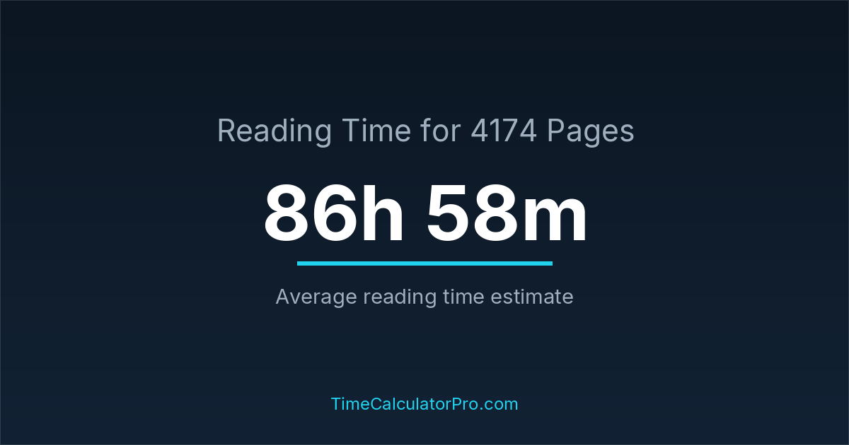 Using a reading time calculator, you can estimate that 4174 pages will take around 86 hours and 58 minutes to complete.