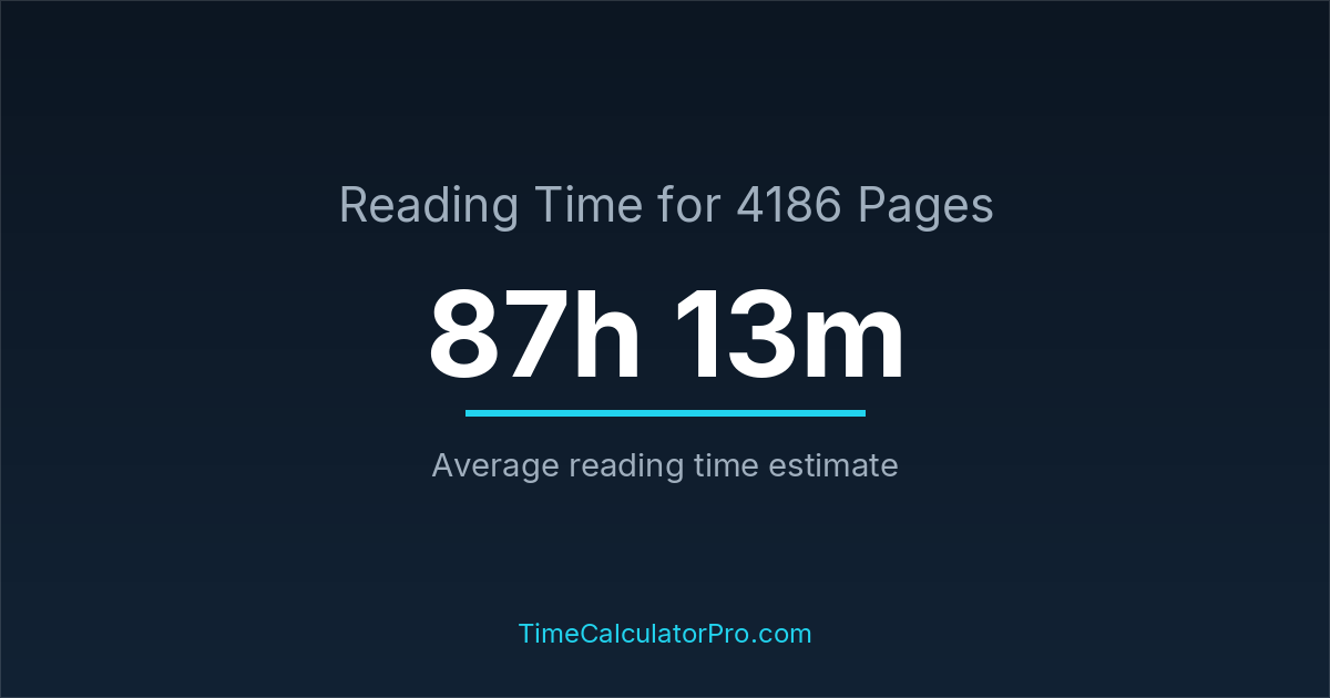 Reading 4186 pages takes about 87 hours and 13 minutes.
