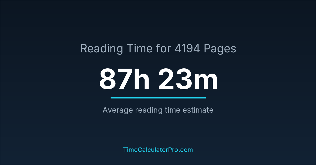 The average reading time for 4194 pages is about 87 hours and 23 minutes, but this can change depending on the difficulty of the text.