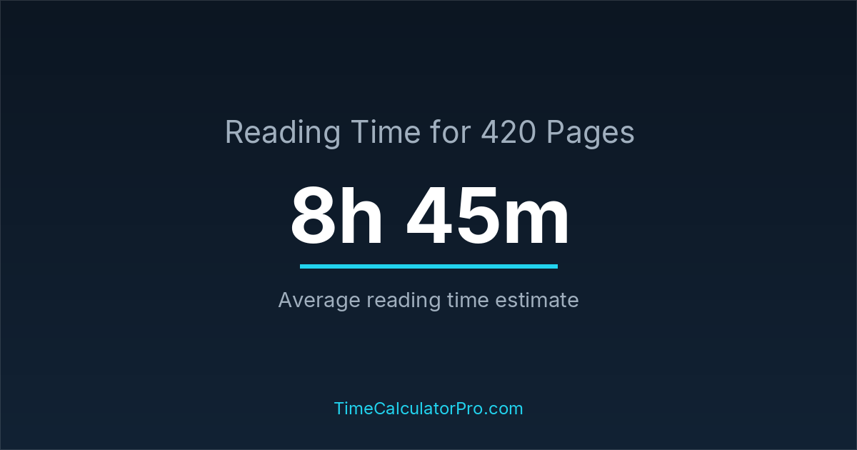 Based on standard reading speeds, reading 420 pages would take roughly 8 hours and 45 minutes under normal conditions.