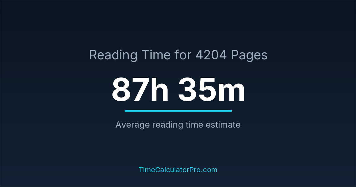 Reading 4204 pages takes about 87 hours and 35 minutes.