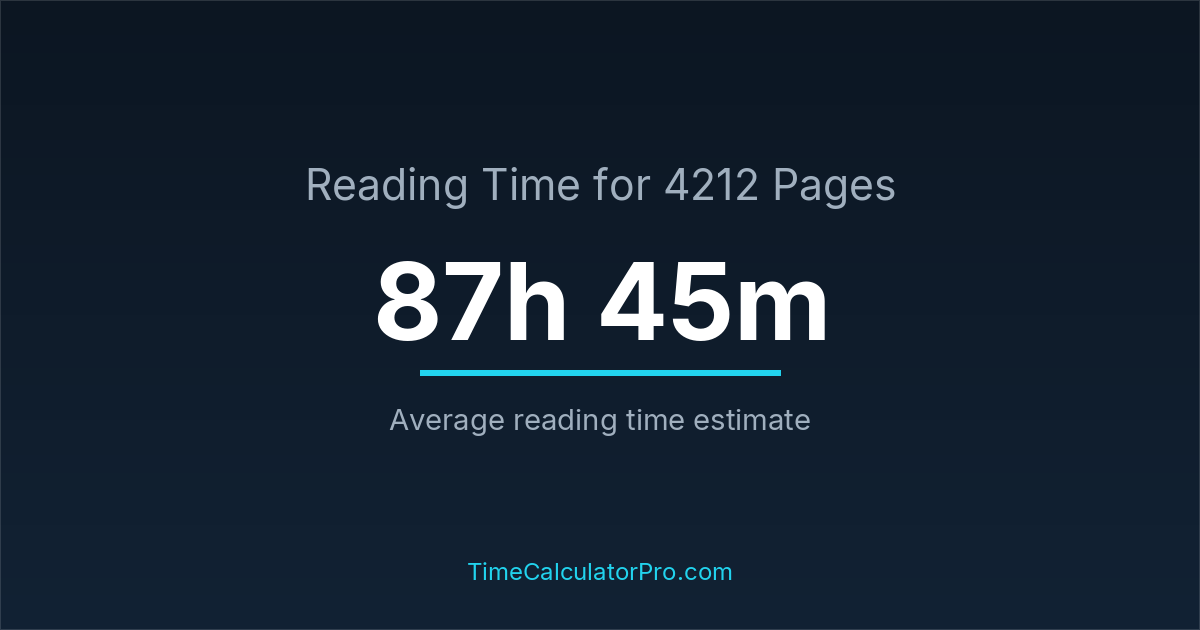 Using a reading time calculator, you can estimate that 4212 pages will take around 87 hours and 45 minutes to complete.