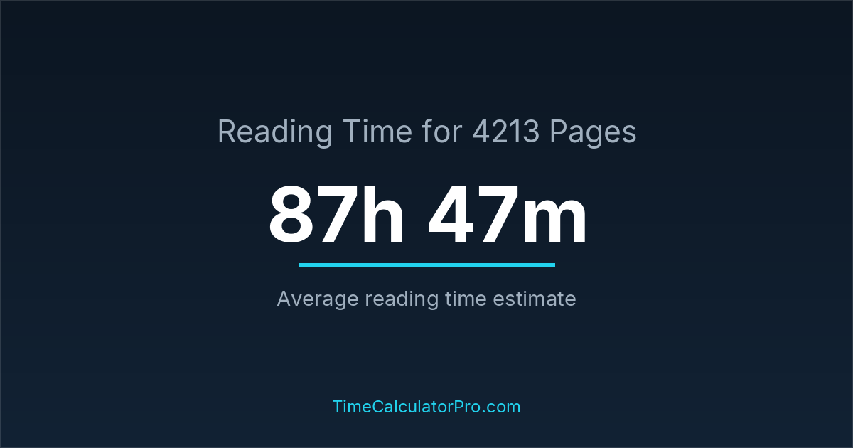 The average reading time for 4213 pages is about 87 hours and 47 minutes, but this can change depending on the difficulty of the text.