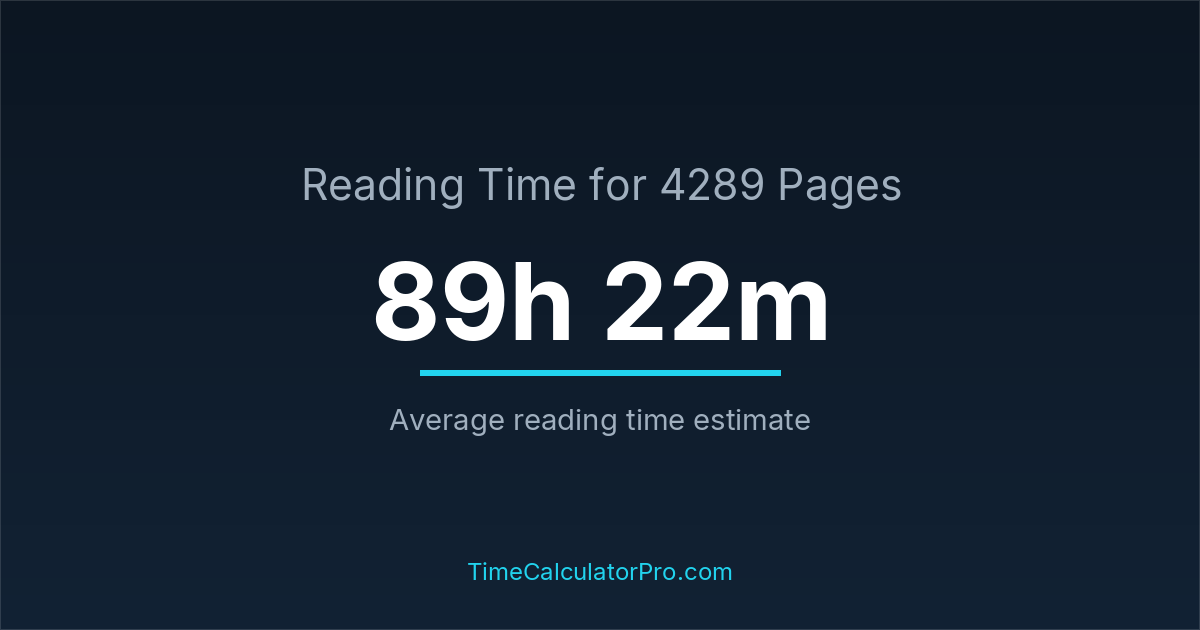 Reading 4289 pages takes about 89 hours and 22 minutes.