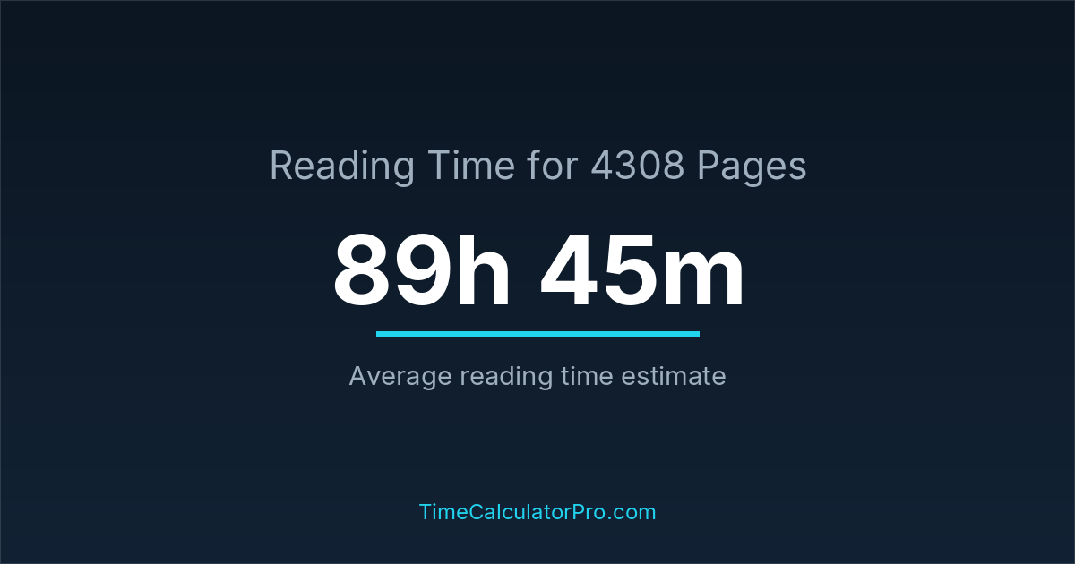 If you are wondering how long it takes to read 4308 pages, the estimated reading time is roughly 89 hours and 45 minutes based on common reading speed averages.