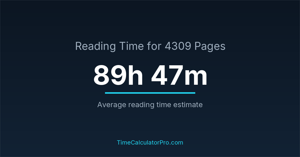 Reading 4309 pages takes about 89 hours and 47 minutes.