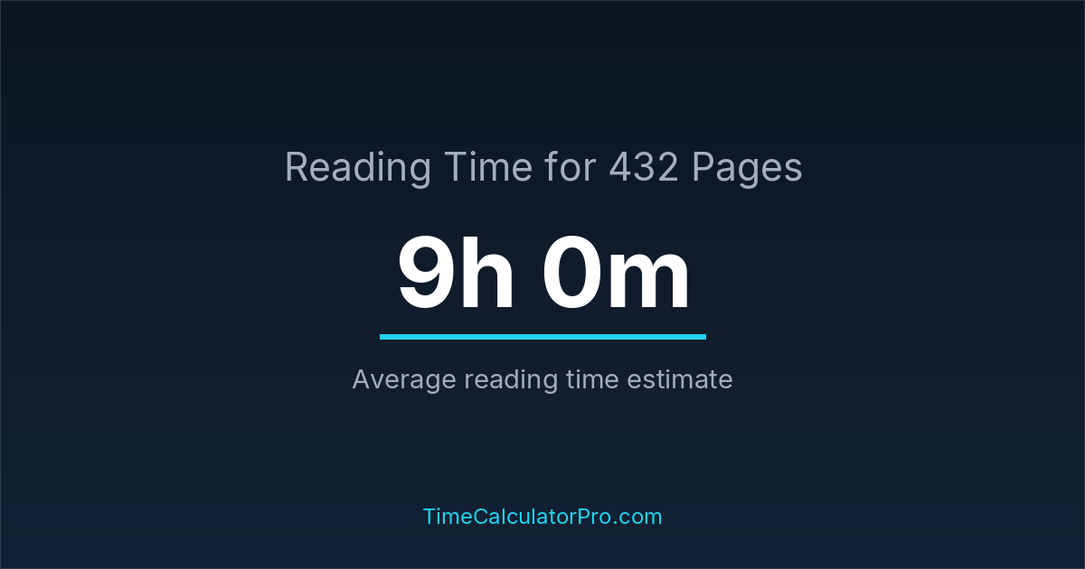 On average, reading 432 pages may require about 9 hours and 0 minutes for most readers, assuming a standard reading pace and moderate difficulty.