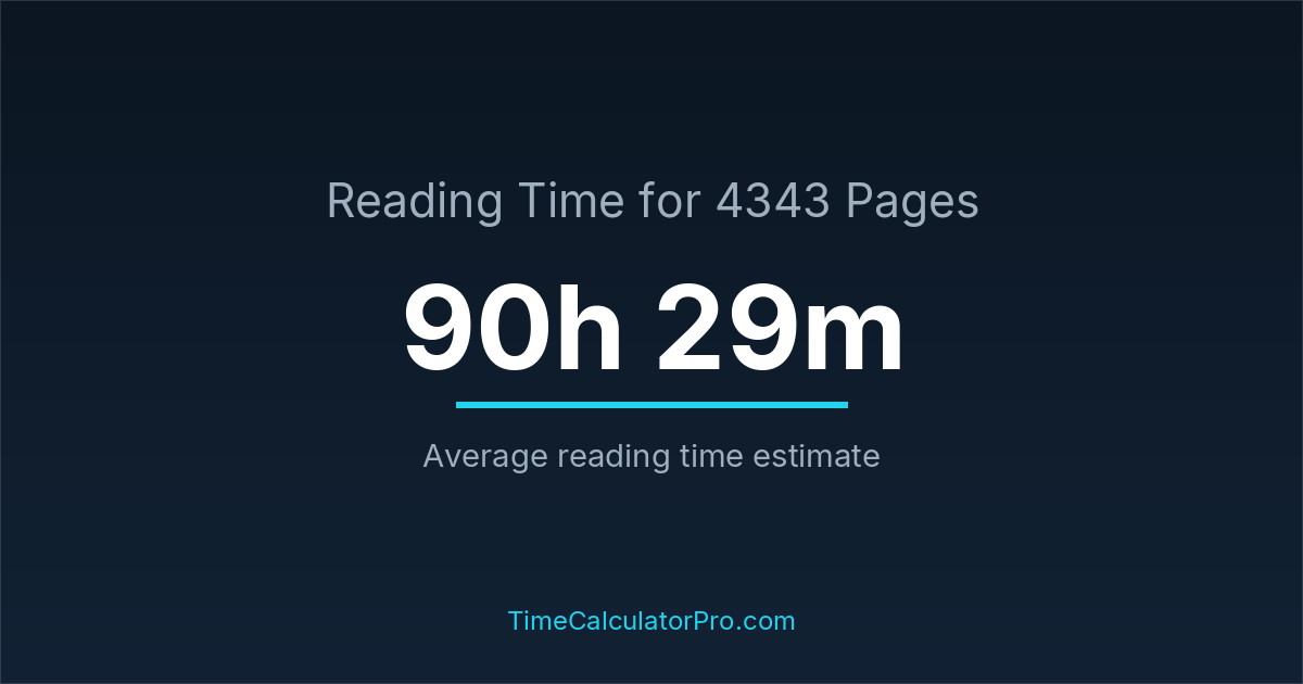 Reading 4343 pages takes about 90 hours and 29 minutes.