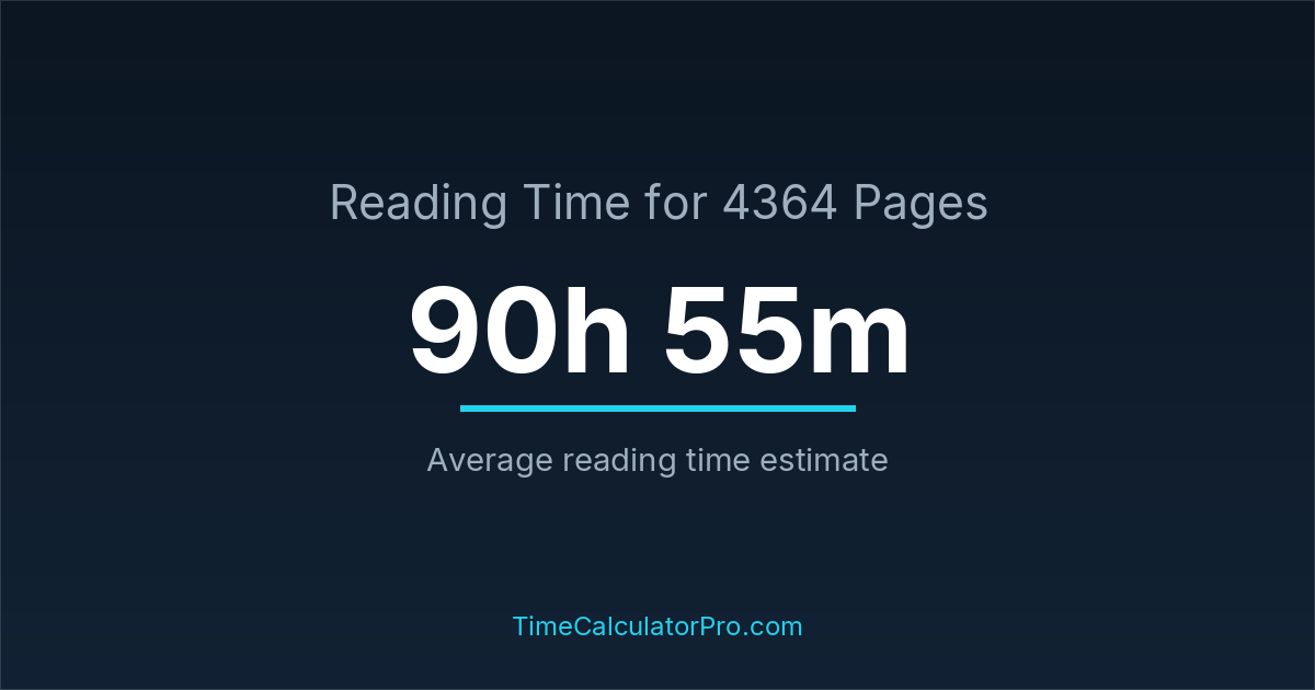 The average reading time for 4364 pages is about 90 hours and 55 minutes, but this can change depending on the difficulty of the text.
