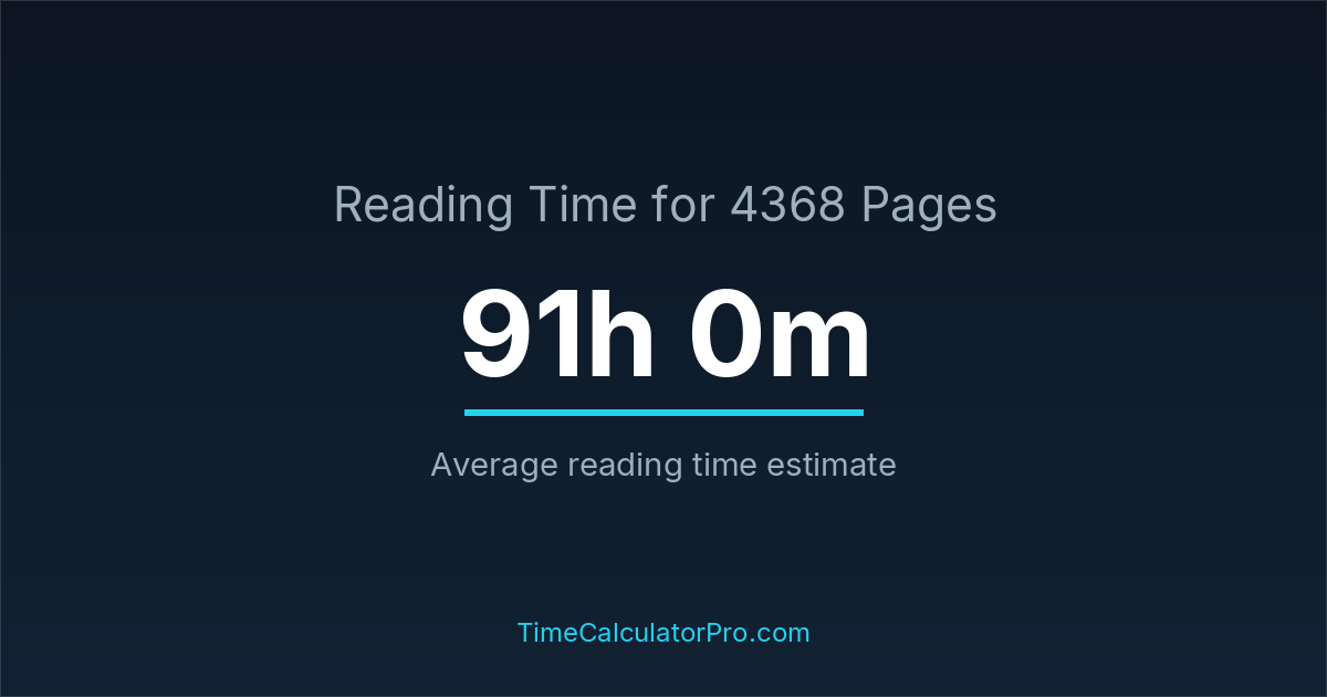 Reading 4368 pages takes about 91 hours and 0 minutes.
