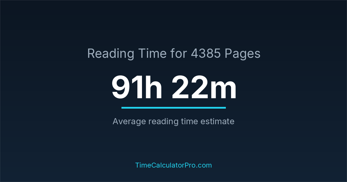 If you are wondering how long it takes to read 4385 pages, the estimated reading time is roughly 91 hours and 22 minutes based on common reading speed averages.
