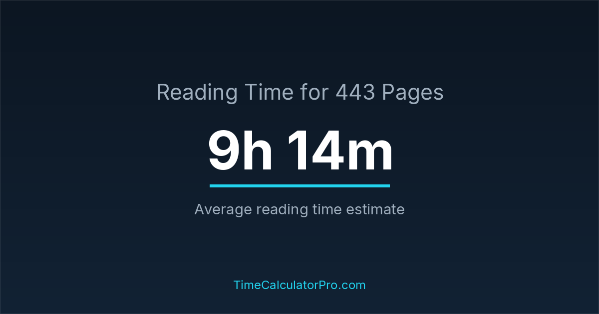 A reading time calculator helps estimate how long it will take to complete 443 pages before you even begin reading, allowing you to plan your time more effectively.