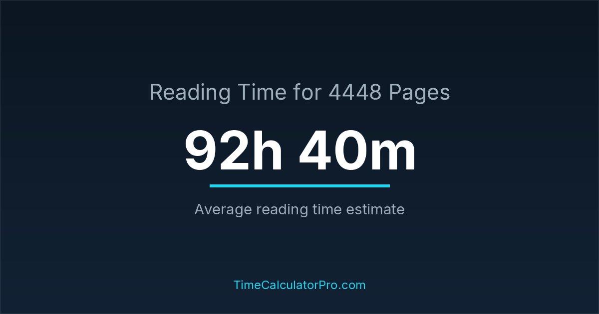 The average reading time for 4448 pages is about 92 hours and 40 minutes, but this can change depending on the difficulty of the text.