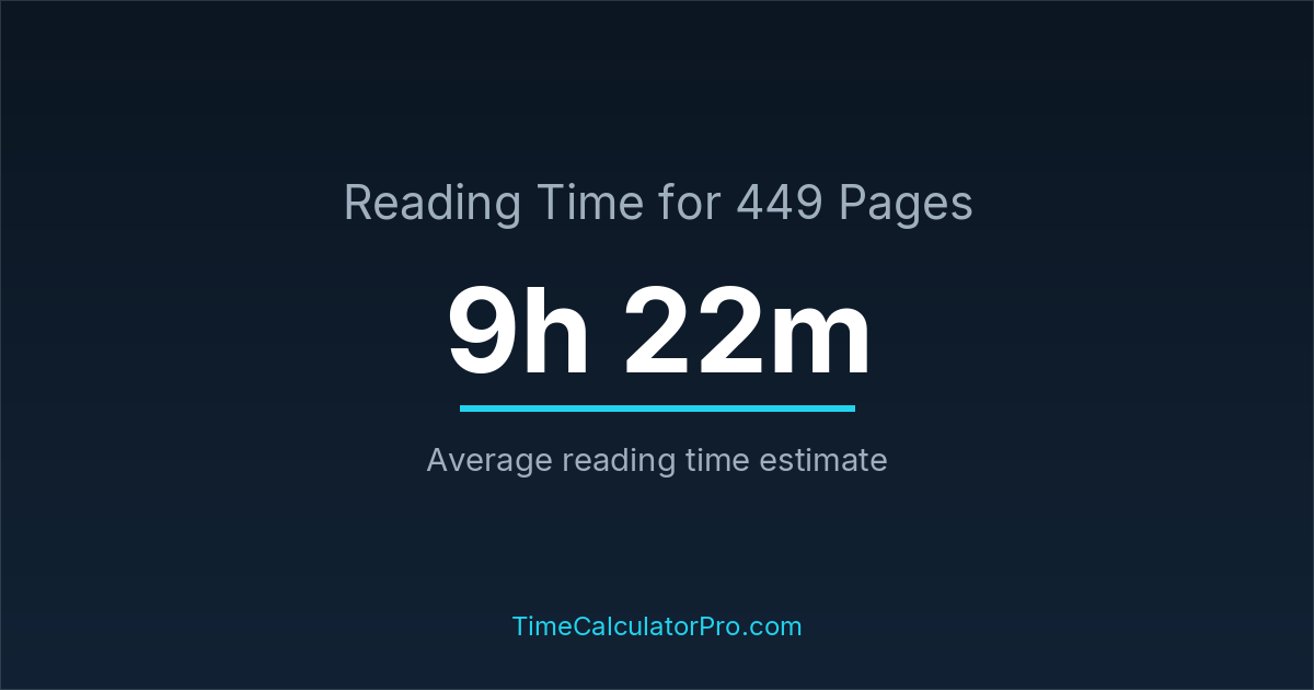 Reading 449 pages usually takes approximately 9 hours and 22 minutes for the average reader, though this can vary depending on concentration and reading habits.