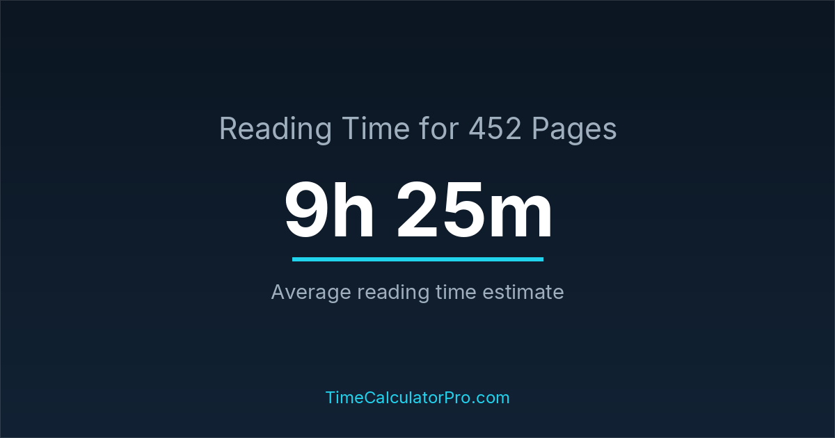 Reading 452 pages takes about 9 hours and 25 minutes.