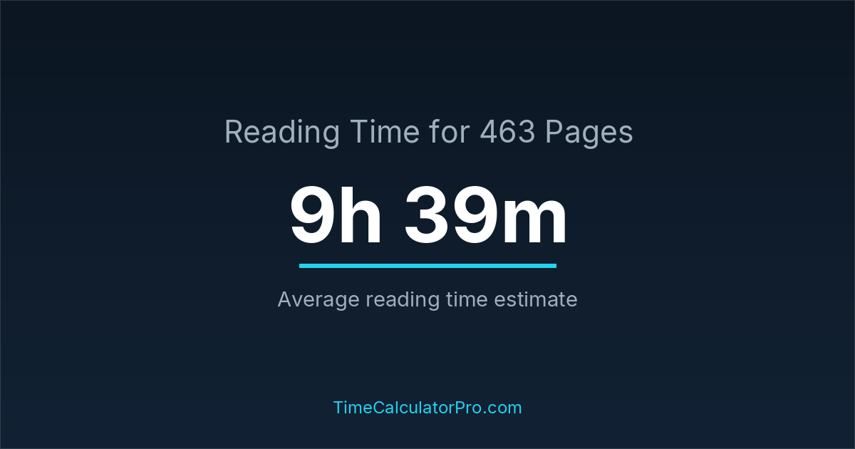 Reading 463 pages takes about 9 hours and 39 minutes.