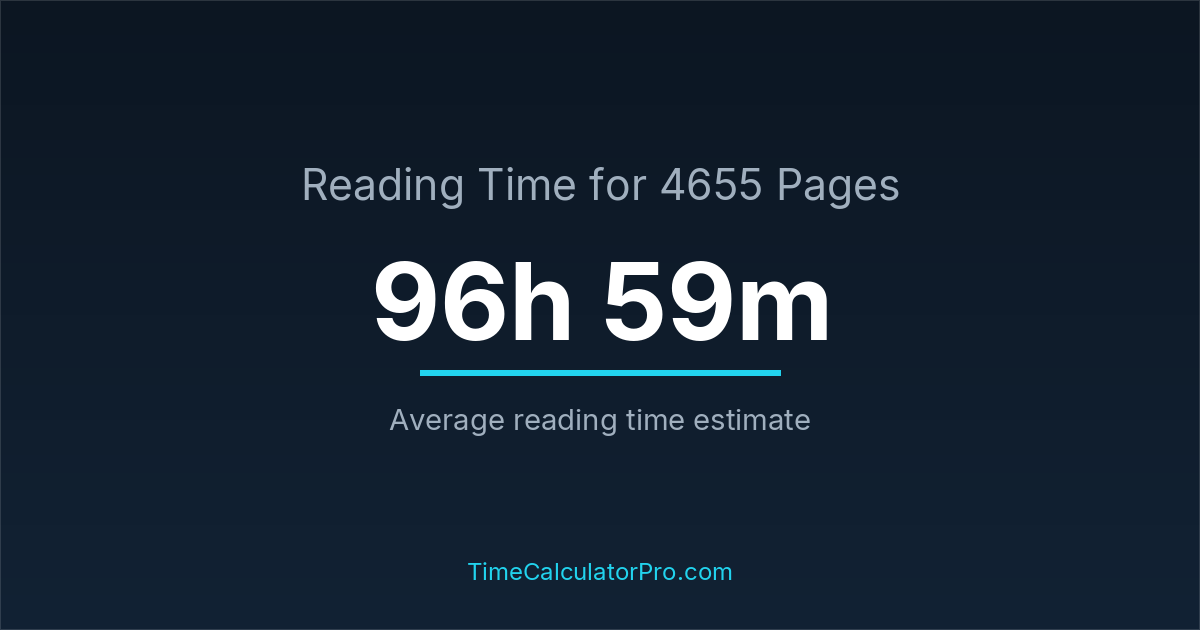 The average reading time for 4655 pages is about 96 hours and 59 minutes, but this can change depending on the difficulty of the text.
