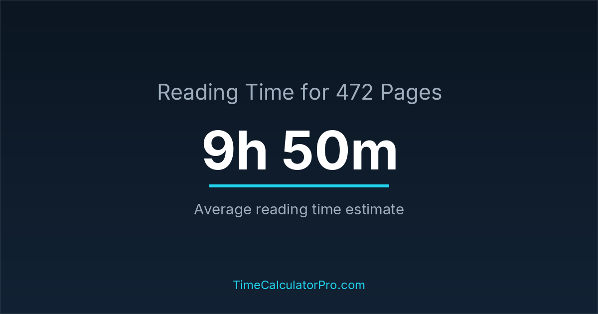 Reading 472 pages takes about 9 hours and 50 minutes.