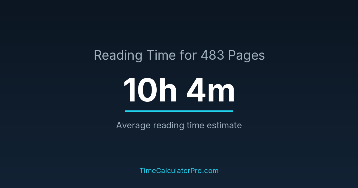 Reading 483 pages takes about 10 hours and 4 minutes.