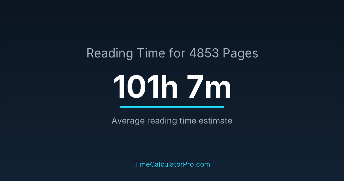 The average reading time for 4853 pages is about 101 hours and 7 minutes, but this can change depending on the difficulty of the text.