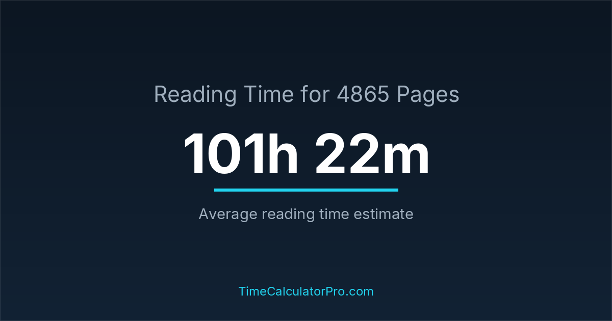 Reading 4865 pages takes about 101 hours and 22 minutes.