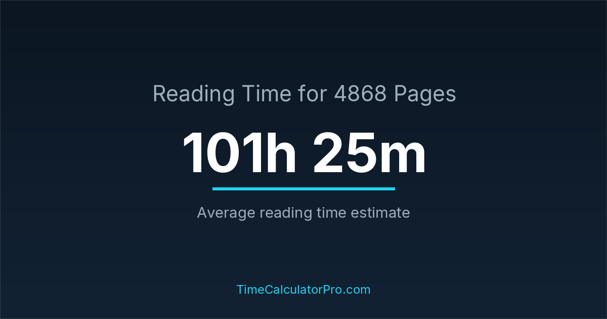 Reading 4868 pages takes about 101 hours and 25 minutes.