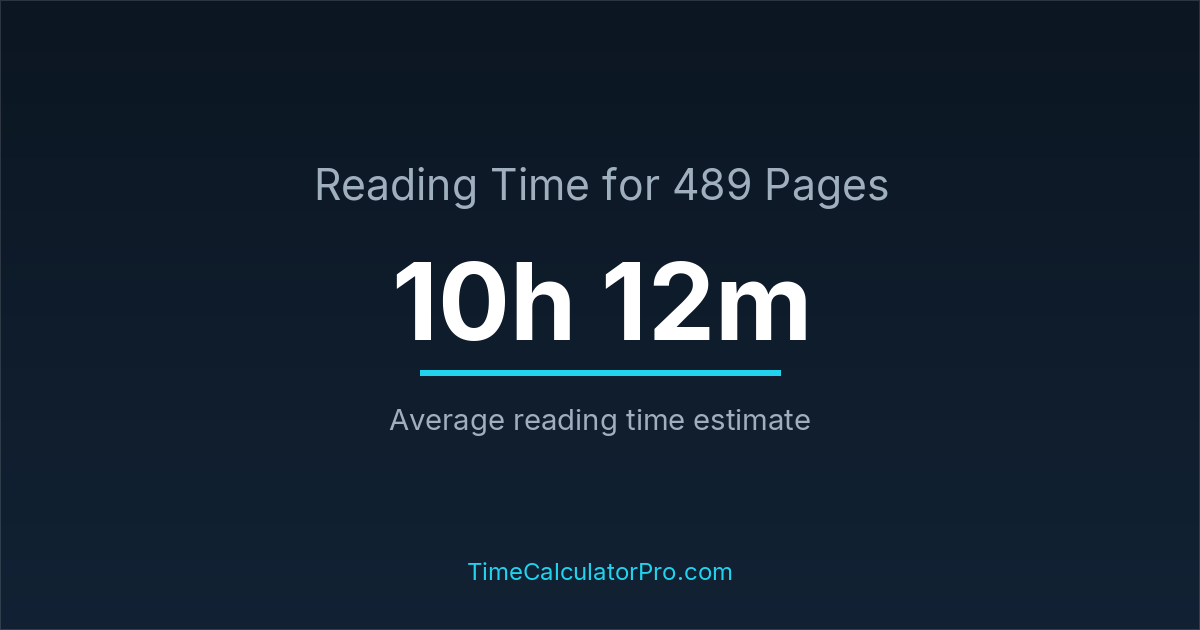 Reading 489 pages takes about 10 hours and 12 minutes.