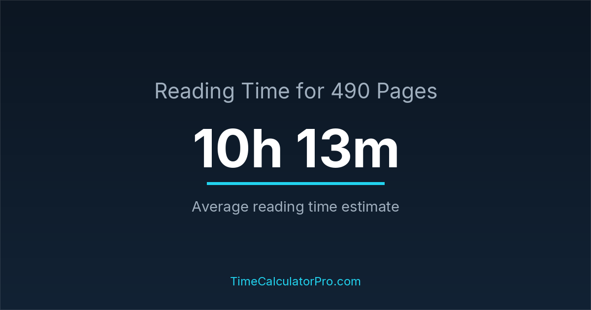 Reading 490 pages usually takes approximately 10 hours and 13 minutes for the average reader, though this can vary depending on concentration and reading habits.