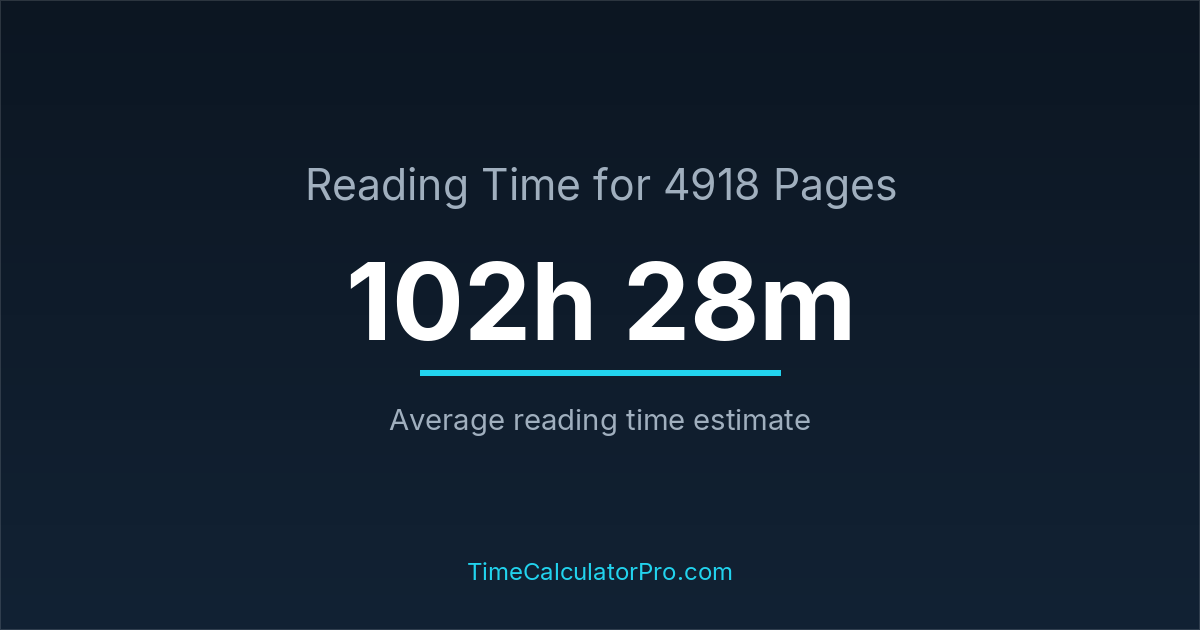 Reading 4918 pages usually takes approximately 102 hours and 28 minutes for the average reader, though this can vary depending on concentration and reading habits.