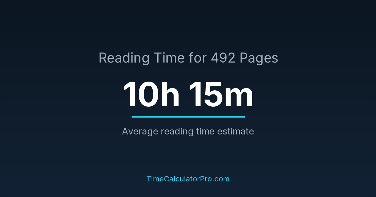 Reading 492 pages takes about 10 hours and 15 minutes.