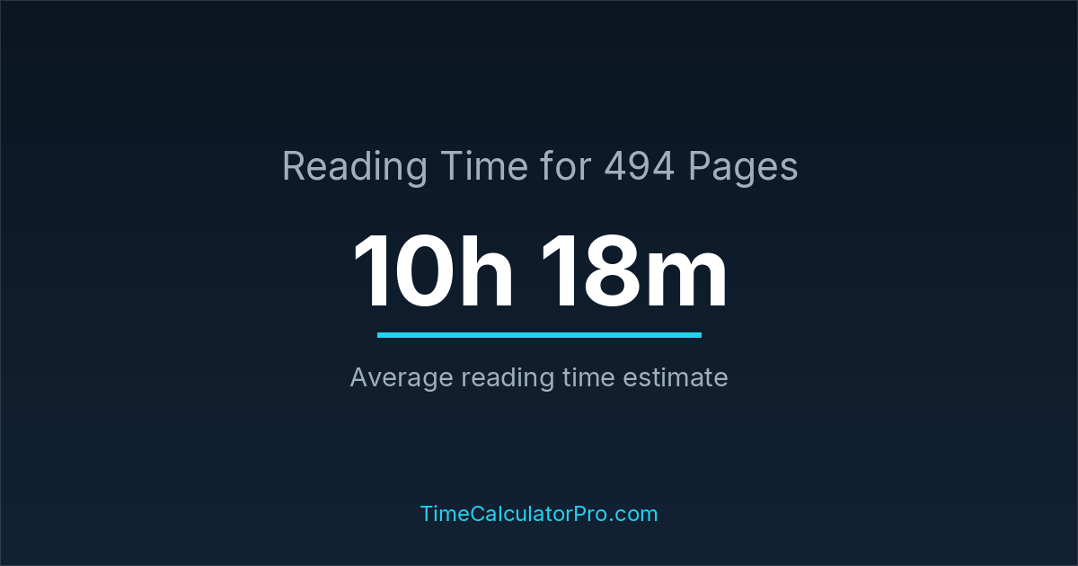 Reading 494 pages takes about 10 hours and 18 minutes.
