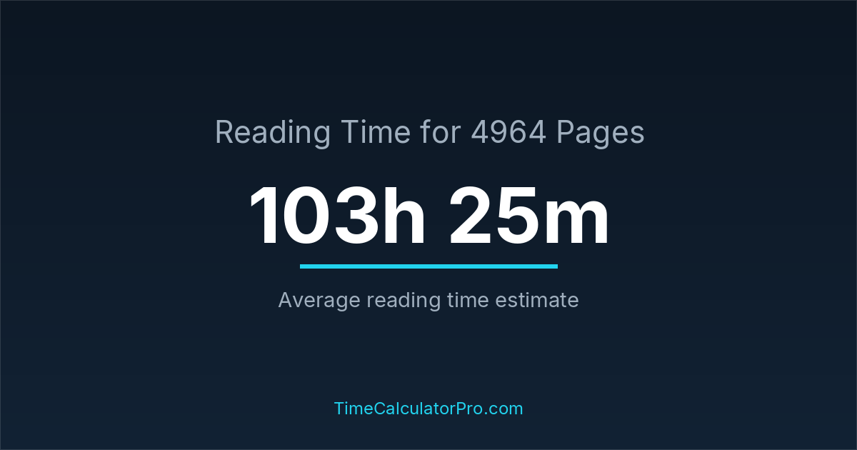 On average, reading 4964 pages may require about 103 hours and 25 minutes for most readers, assuming a standard reading pace and moderate difficulty.