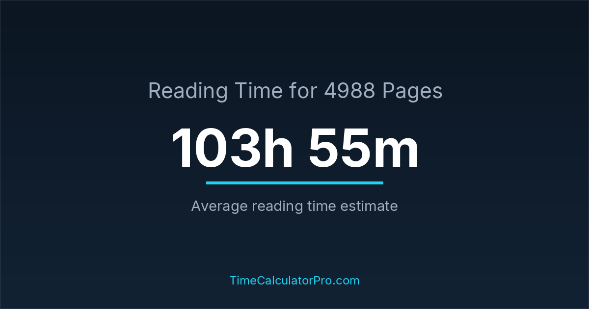 Reading 4988 pages takes about 103 hours and 55 minutes.