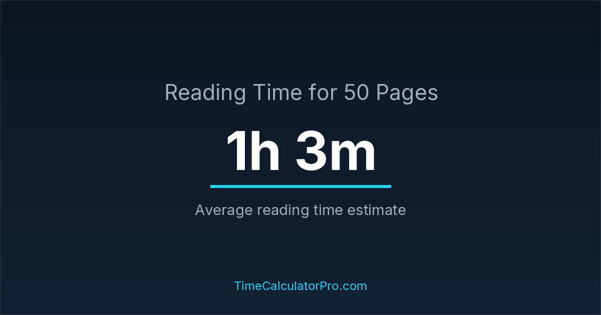 At an average reading speed of about 200 words per minute, many readers can comfortably finish 50 pages within the estimated time frame.