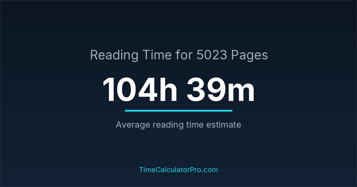 Reading 5023 pages usually takes approximately 104 hours and 39 minutes for the average reader, though this can vary depending on concentration and reading habits.