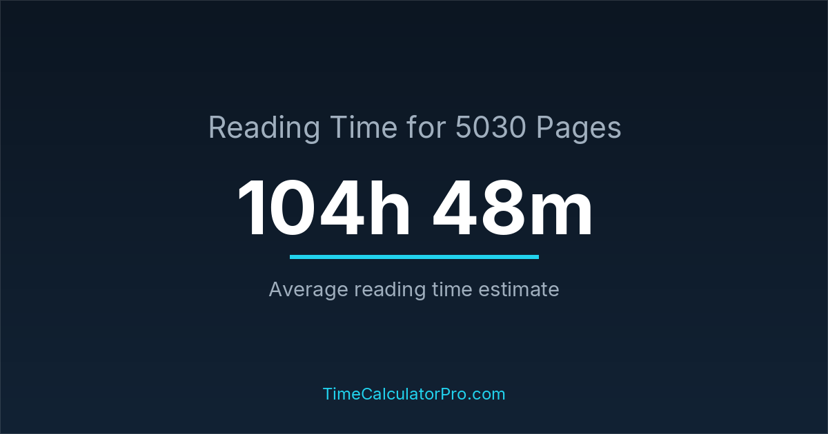 If you read at an average speed of 200 words per minute, reading 5030 pages will take approximately 104 hours and 48 minutes. This estimate assumes around 250 words per page, which is typical for most books.