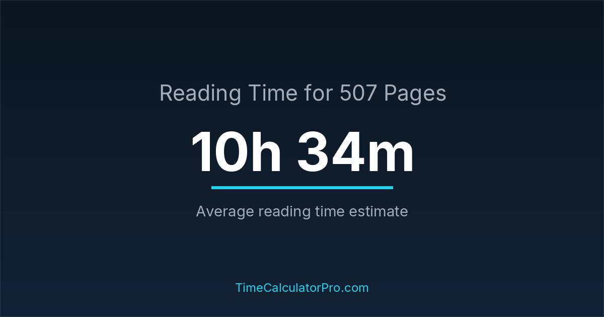 Reading 507 pages takes about 10 hours and 34 minutes.