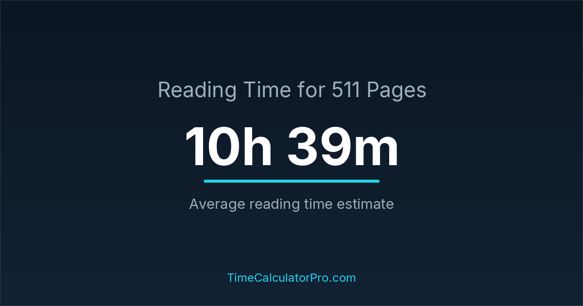 Reading 511 pages takes about 10 hours and 39 minutes.