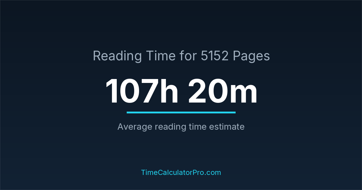Using a reading time calculator, you can estimate that 5152 pages will take around 107 hours and 20 minutes to complete.