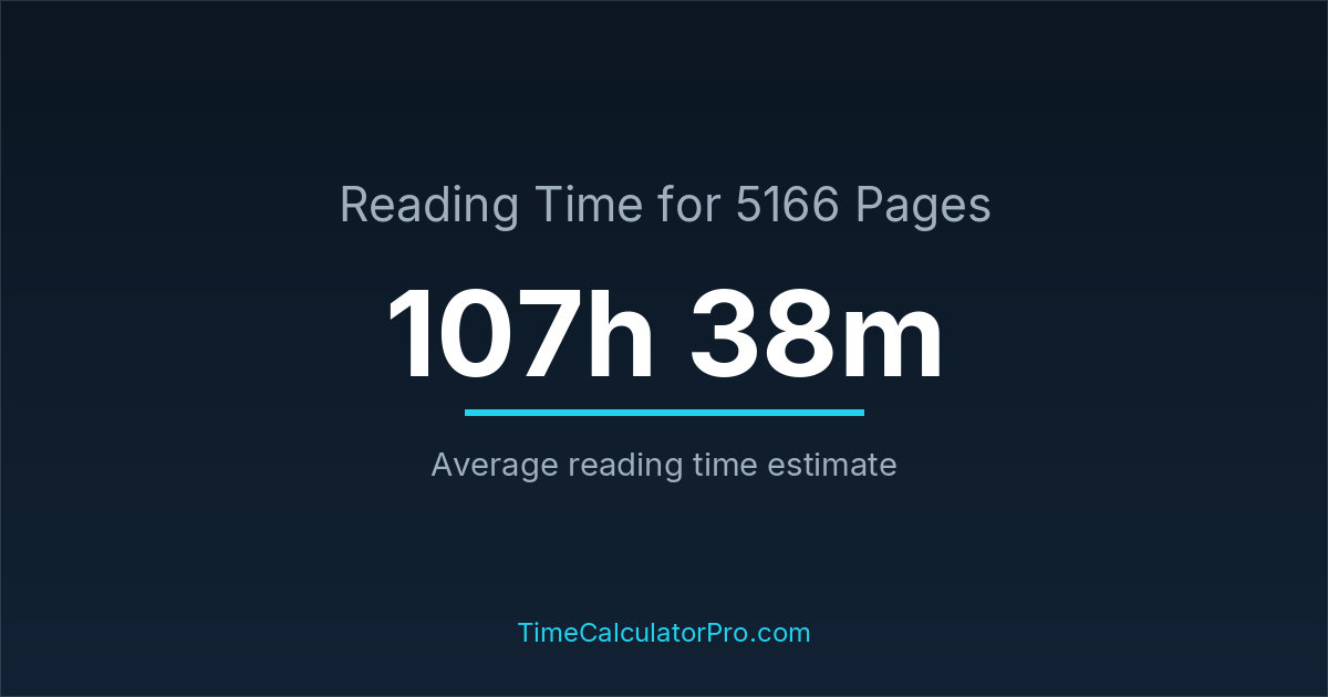 Using a reading time calculator, you can estimate that 5166 pages will take around 107 hours and 38 minutes to complete.