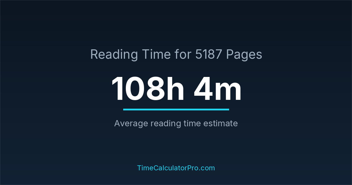 On average, reading 5187 pages may require about 108 hours and 4 minutes for most readers, assuming a standard reading pace and moderate difficulty.
