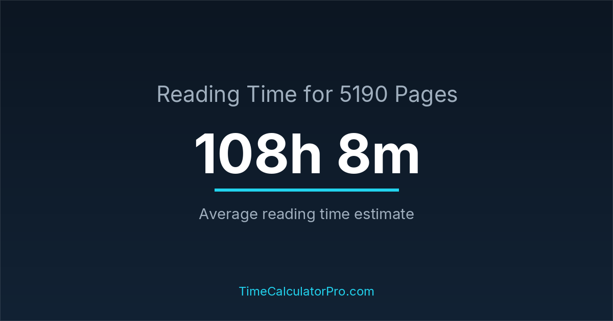 Many readers ask how long it takes to read 5190 pages, and the answer is typically around 108 hours and 8 minutes depending on reading speed.