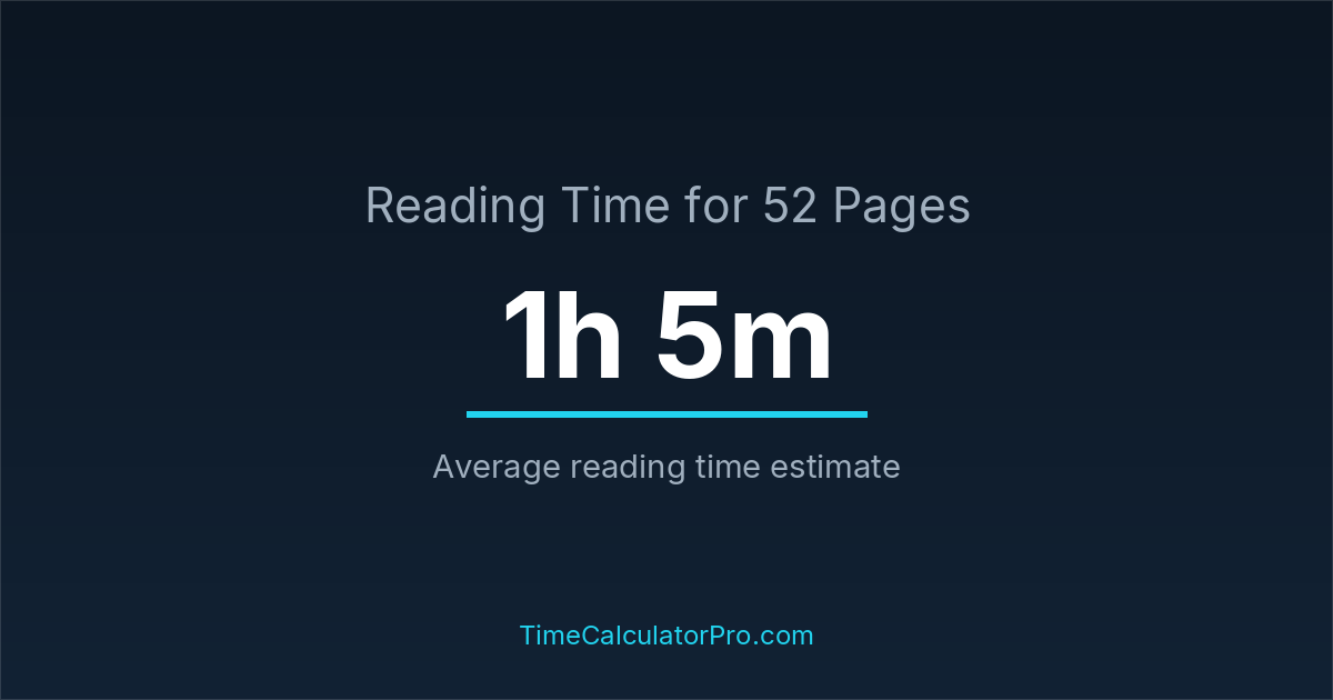 On average, reading 52 pages may require about 1 hours and 5 minutes for most readers, assuming a standard reading pace and moderate difficulty.
