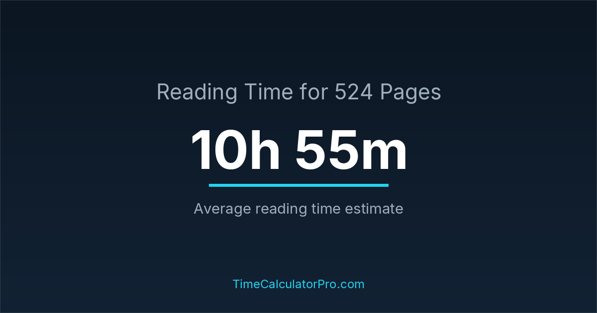 Reading 524 pages takes about 10 hours and 55 minutes.