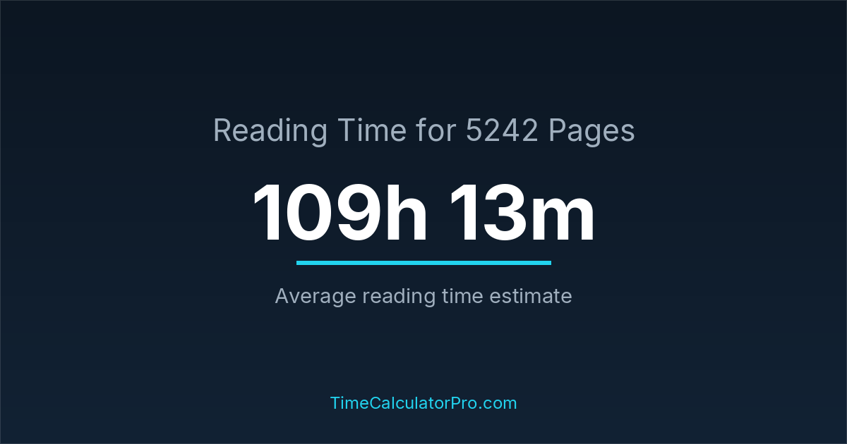 Many readers ask how long it takes to read 5242 pages, and the answer is typically around 109 hours and 13 minutes depending on reading speed.